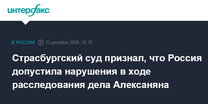 Страсбургский суд признал, что Россия допустила нарушения в ходе расследования дела Алексаняна