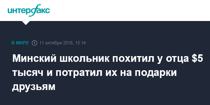 Минский школьник похитил у отца $5 тысяч и потратил их на подарки друзьям