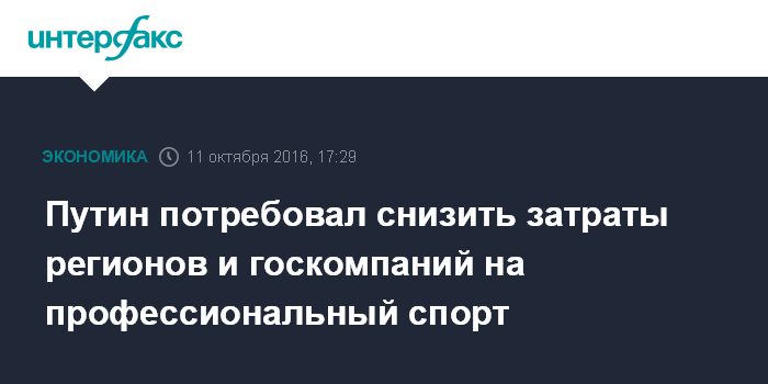 Москва. 11 октября. INTERFAX.RU - Бюджеты регионов и компаний с государственным участием должны снижать затраты на содержание профессионального спорта, заявил президент РФ Владимир Путин.