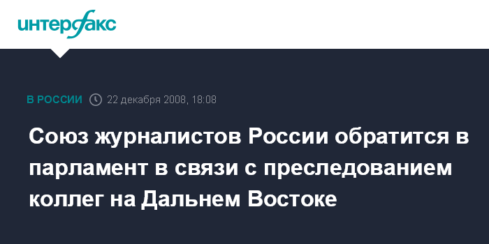 Союз журналистов России обратится в парламент в связи с преследованием коллег на Дальнем Востоке