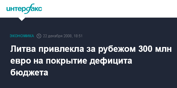 Москва. 22 декабря. INTERFAX.RU - Министерство финансов Литвы на минувшей неделе привлекло заем одного из европейских банков в размере около 300 млн евро, сообщил BNS ряд осведомленных источников. Cредства будут направлены на покрытие растущего бюджетного дефицита.
