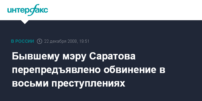 Бывшему мэру Саратова перепредъявлено обвинение в восьми преступлениях