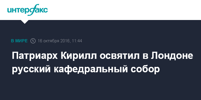 Москва. 16 октября. INTERFAX.RU - Патриарх Московский и всея Руси Кирилл в воскресенье освятил русский Успенский кафедральный собор в Лондоне, а также колокола и фрески на наружной стене храма.