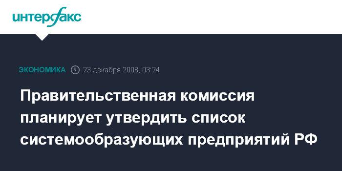 "Члены комиссии исходят из того, что этот список (системообразующих предприятий - ИФ) не будет окончательным - исходя из экономической ситуации, он будет сокращаться или увеличиваться", - заявил накануне, в ходе встречи с премьер-министром РФ Владимиром Путиным, первый вице- премьер И.Шувалов.
