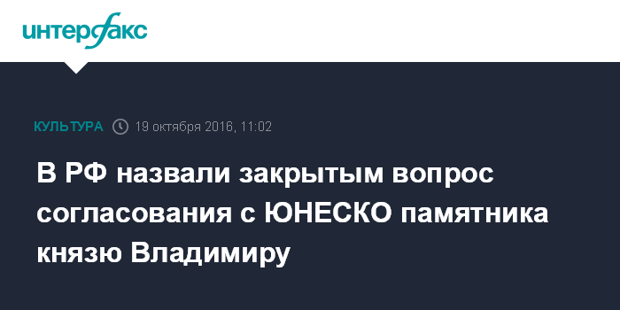 В РФ назвали закрытым вопрос согласования с ЮНЕСКО памятника князю Владимиру