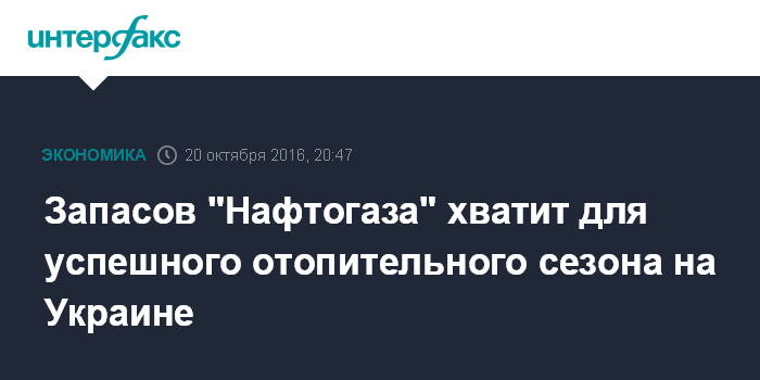 Москва. 20 октября. INTERFAX.RU - НАК "Нафтогаз Украины" располагает достаточными запасами природного газа для успешного прохождения отопительного сезона 2016-2017 ггодов, говорится в пресс-релизе управления по связям с общественностью компании, распространенном в четверг.