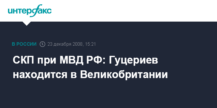 Москва. 23 декабря. INTERFAX.RU - Бывший глава компании "Русснефть" Михаил Гуцериев находится на территории Великобритании, заявил на пресс-конференции в центральном офисе "Интерфакса" во вторник заместитель начальника следственного комитета при МВД РФ генерал-майор Олег Лагунов.