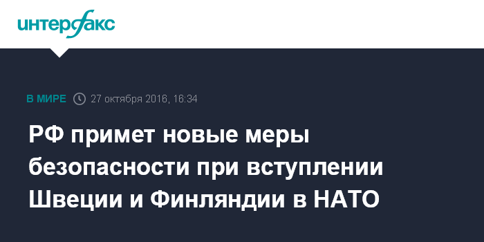 Москва. 27 октября. INTERFAX.RU - Москва примет дополнительные меры по обеспечению своей безопасности в случае вступления Швеции и Финляндии в НАТО, заявил "Интерфаксу" источник в МИД РФ.