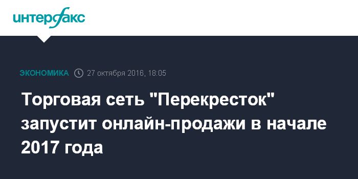 Москва. 27 октября. INTERFAX.RU - Х5 Retail Group планирует в начале следующего года запустить онлайн-продажи на базе "Перекрестка".