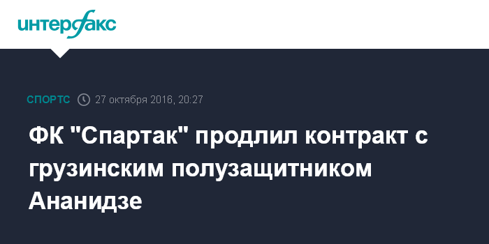 Москва. 27 октября. INTERFAX.RU - Московский ФК «Спартак» объявил о подписании нового соглашения с полузащитником Джано Ананидзе, срок действия контракта составит пять лет.