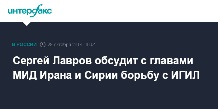 По словам официального представителя МИД РФ, "также Сергей Лавров, Валид Муаллем и Мухаммад Джавад Зариф предполагают обсудить складывающуюся военно-политическую обстановку в Ираке в том числе с учетом задачи эффективной борьбы с террористами ИГИЛ (запрещена в РФ - ИФ)".