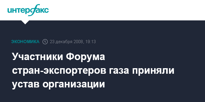 "Сегодня родилась новая организация, утвержденная новым договором - Форум стран-экспортеров газа. Утвержден устав" - сказал он.