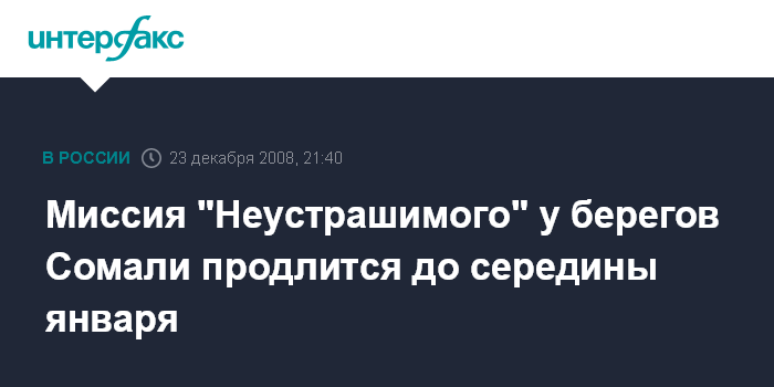 Ранее сообщалось, что миссия "Неустрашимого" у берегов Сомали, куда он был послан для обеспечения безопасности судоходства в связи с действиями пиратов, завершится в декабре.