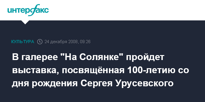 В галерее "На Солянке" пройдет выставка, посвящённая 100-летию со дня рождения Сергея Урусевского