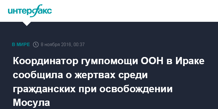 Координатор гумпомощи ООН в Ираке сообщила о жертвах среди гражданских при освобождении Мосула