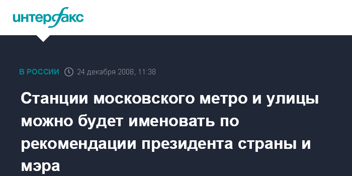 Станции московского метро и улицы можно будет именовать по рекомендации президента страны и мэра