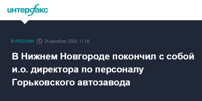 Москва. 24 декабря. INTERFAX.RU - И.о. директора по персоналу ОАО "ГАЗ" Анатолий Емелин найден мертвым на территории Горьковского автозавода в Нижнем Новгороде в среду.