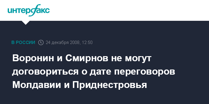 Воронин в ходе встречи попросил назначить дату возобновления переговоров и заявил о готовности молдавской стороны обсуждать все вопросы в рамках переговорного процесса. Смирнов, в свою очередь, сказал, что не знает, когда можно назначить дату переговоров.