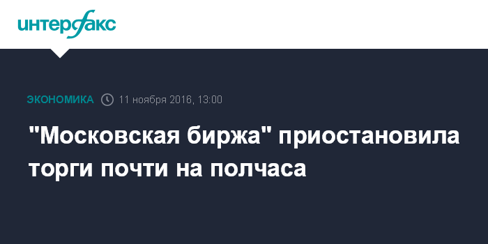 Москва. 11 ноября. INTERFAX.RU - "Московская биржа" временно приостановила торги на валютном рынке и рынке драгоценных металлов в 12:42 МСК, сообщается на сайте биржи.