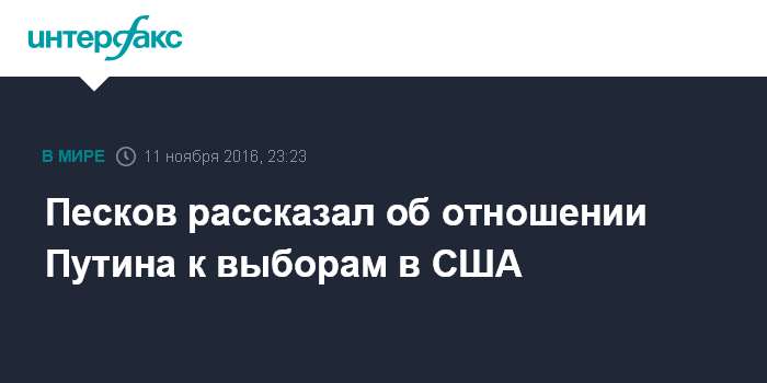 По словам Пескова, российский президент был "очень аккуратен" в своих комментариях и отмечал, что Россия примет любой результат президентских выборов в США и что Москва не намерена вмешиваться во внутреннюю политику США.