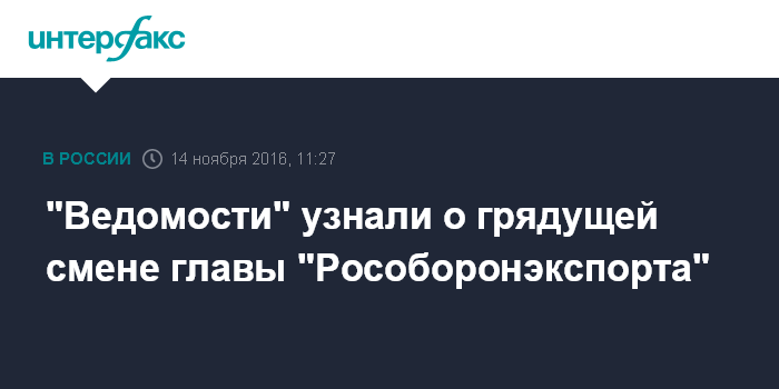 "Ведомости" узнали о грядущей смене главы "Рособоронэкспорта"
