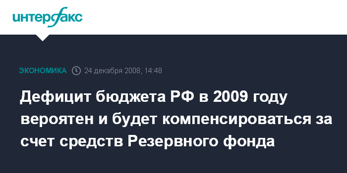 Дефицит бюджета РФ в 2009 году вероятен и будет компенсироваться за счет средств Резервного фонда