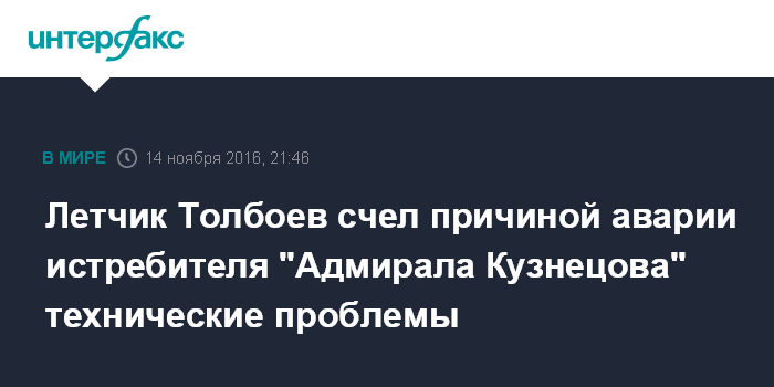 Летчик Толбоев счел причиной аварии истребителя "Адмирала Кузнецова" технические проблемы
