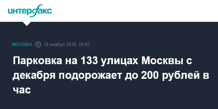 Москва. 15 ноября. INTERFAX.RU - Из-за загруженности движения тарифы на парковку на некоторых улицах Москвы со 2 декабря будут повышены до 200 рублей в час, сообщили "Интерфаксу" в пресс-службе столичного департамента транспорта и развития дорожно-транспортной инфраструктуры во вторник.