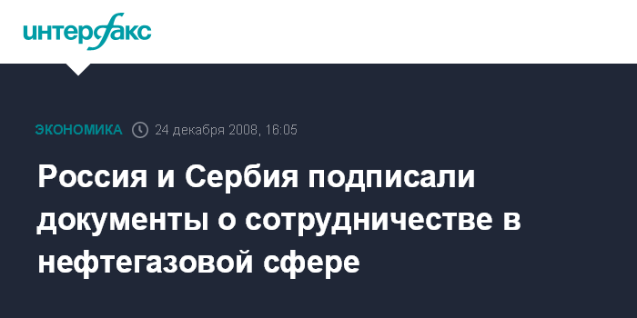 Москва. 24 декабря. INTERFAX.RU - Договор о приобретении ОАО "Газпром нефть" контрольного пакета (51%) акций компании "Нефтяная индустрия Сербии" (NIS) подписан в среду в Кремле в присутствии президентов двух стран.