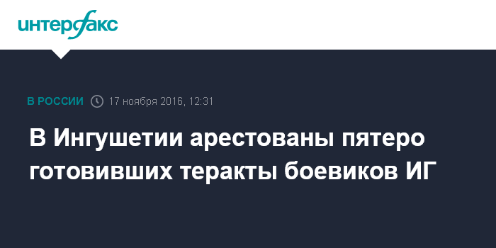 Ранее сотрудники ФСБ в ходе оперативно-розыскных мероприятий задержали пятерых участников экстремистской группы, связанной с ИГИЛ, которые готовили террористические акты на территории Ингушетии и в Москве.