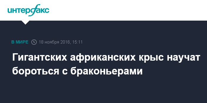 Москва. 18 ноября. INTERFAX.RU - Гигантских африканских сумчатых крыс, известных своим острым обонянием, привлекут к борьбе с браконьерами, незаконно охотящимися на диких животных.