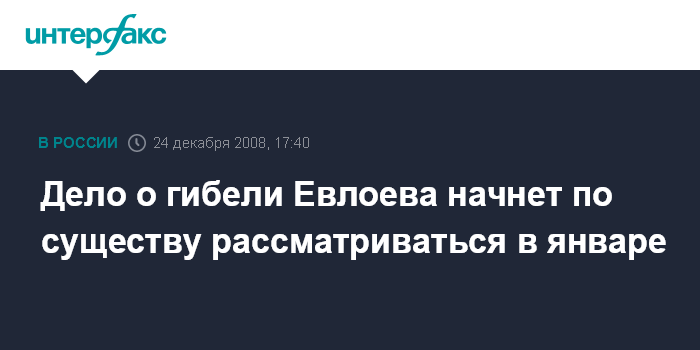 Москва. 24 декабря. INTERFAX.RU - Назрановский суд Ингушетии в середине января приступит к рассмотрению по существу уголовного дела о гибели владельца сайта "Ингушетия.ру" Магомеда Евлоева.