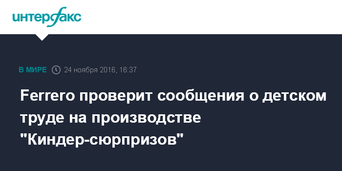 В заявлении Ferrero говорится, что в компании глубоко озабочены появившейся в СМИ информацией и намерены как можно скорее установить все подробности. В итальянской компании настаивают, что ее устав запрещает использовать детский труд в любой форме, а все поставщики регулярно проходят проверки.