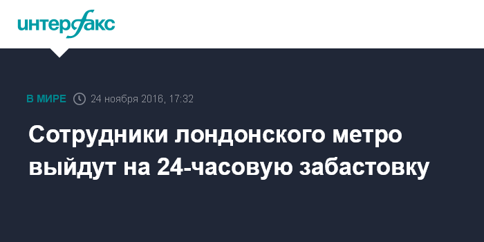 Москва. 24 ноября. INTERFAX.RU - Сотни сотрудников лондонского метрополитена выйдут на 24-часовую забастовку, которая начнется 6 декабря в 21:30 по местному времени, пишет Financial Times со ссылкой на заявление профсоюза.