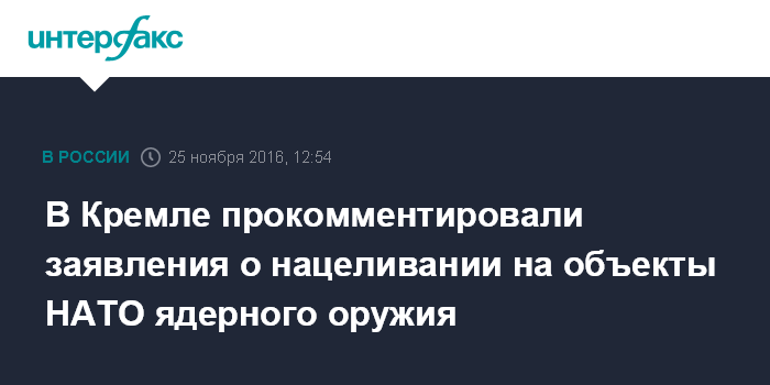 В ходе общения с журналистами Пескова попросили прокомментировать высказывания сенатора Франца Клинцевича о готовности перенацелить российское ядерное оружие на объекты НАТО в ответ на агрессивные действия альянса.