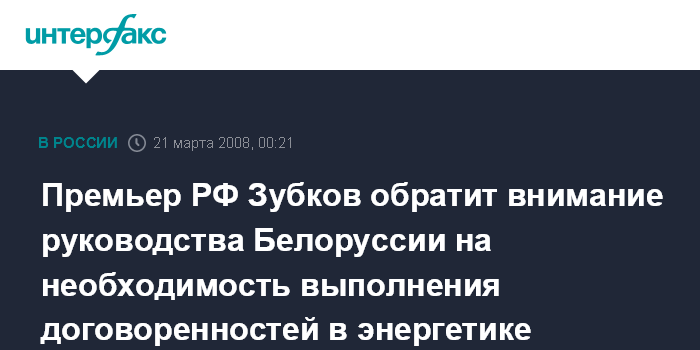 Премьер РФ Зубков обратит внимание руководства Белоруссии на необходимость выполнения договоренностей в энергетике