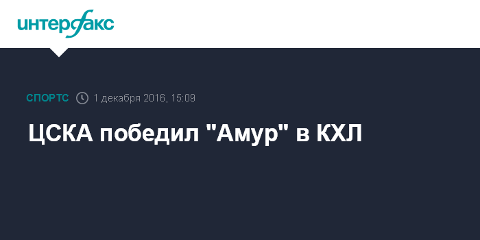 Москва. 1 декабря. INTERFAX.RU - В матче очередного тура регулярного чемпионата Континентальной хоккейной лиги (КХЛ) московский ЦСКА в Хабаровске одержал победу над местным "Амуром".