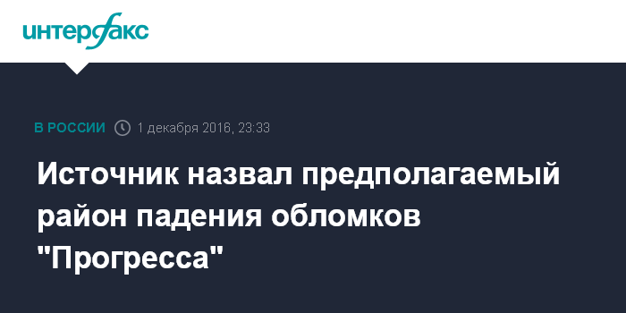 Москва. 1 декабря. INTERFAX.RU - Обломки ракеты-носителя "Союз-У", стартовавшей с Байконура с космическим грузовиком "Прогресс МС-04", упали на расстоянии 80 километров от столицы Тувы Кызыла, сообщил "Интерфаксу" источник в ракетно-космической отрасли.