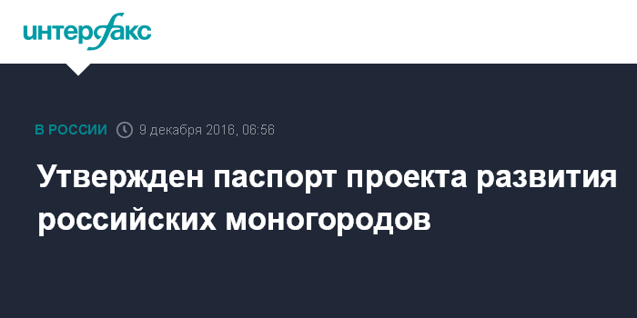 Москва. 9 декабря. INTERFAX.RU - К 2018-2019 годам в России должно стать на 18 моногородов меньше, а в остальных появятся десятки тысяч рабочих мест, не связанных с градообразующим предприятием. Такие задачи, среди прочих, утверждены в паспорте проекта "Комплексное развитие моногородов", сообщает сайт правительства РФ.
