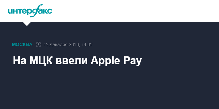 Москва. 12 декабря. INTERFAX.RU - Система Apple Pay доступна для оплаты проезда на Московском центральном кольце (МЦК), сообщили "Интерфаксу" в понедельник в пресс-службе столичного метрополитена.