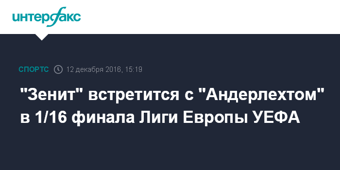 Москва. 12 декабря. INTERFAX.RU - Бельгийский "Андерлехт" стал соперником российского клуба "Зенит" в 1/16 финала Лиги Европы УЕФА.