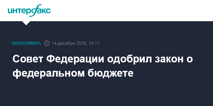 Москва. 14 декабря. INTERFAX.RU - Члены Совета Федерации на заседании в среду одобрили закон о федеральном бюджете на 2017 год и плановый период 2018-2019 годов.