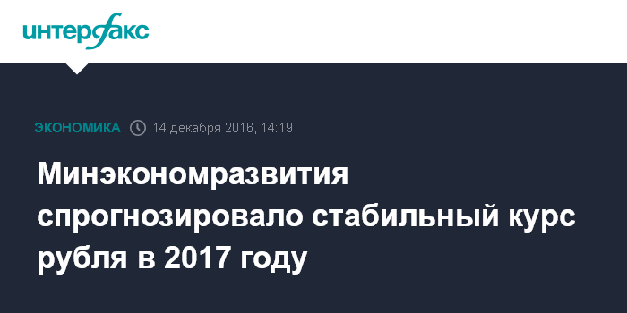Минэкономразвития спрогнозировало стабильный курс рубля в 2017 году