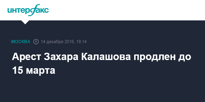 "Суд по ходатайству следователя продлил до 15 марта срок содержания под стражей Захару Калашову", - сказала "Интерфаксу" пресс-секретарь суда Анастасия Дзюрко в среду.