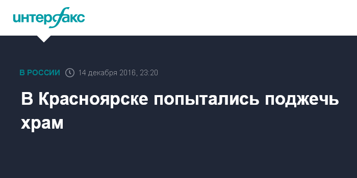Москва. 14 декабря. INTERFAX.RU - Попытка поджога центрального входа храма Рождества Христова в Красноярске была совершена в среду вечером, сообщает пресс-служба прихода.