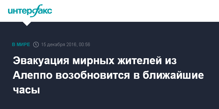 Эвакуация мирных жителей из Алеппо возобновится в ближайшие часы