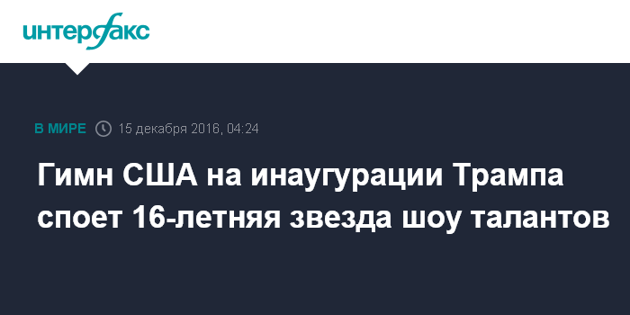 Гимн США на инаугурации Трампа споет 16-летняя звезда шоу талантов