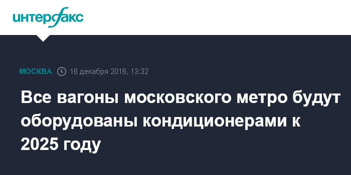 Москва. 16 декабря. INTERFAX.RU - Все вагоны московского метро будут оснащены кондиционерами к 2025 году, сообщил журналистам в пятницу первый заместитель руководителя столичного департамента транспорта Гамид Булатов.