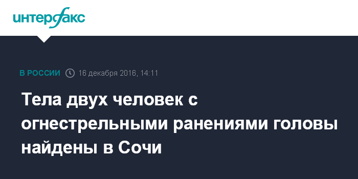 Тела двух человек с огнестрельными ранениями головы найдены в Сочи