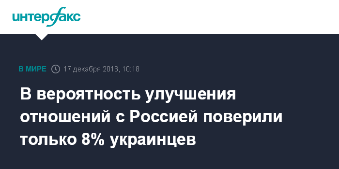 В вероятность улучшения отношений с Россией поверили только 8% украинцев